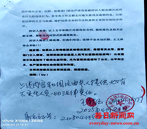 控诉人承诺:以上文字和图片内容均有合同、验收报告及相关证据支撑,愿配合任何形式的调查核实。