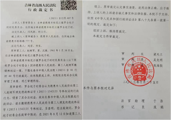 为了维护村民的集体利益,罗全坨子村村委会曾经向长春市中级法院提起诉讼,败诉后又上诉至吉林省高级法院,但均以败诉告终。对此,吉林省高级法院(2023)吉行终407号行政裁定书记载如下: