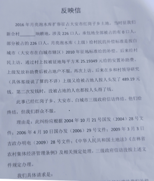 早在2004年10月21日,“国发(2004)28号”文件和2006年4月10日“国办发(2006)29号”文件以及2009年3月3日“吉政办明电(2009)28号”文件,《中华人民共和国土地法》《吉林省农村集体经济管理条例》出台的各种文件均没被采纳,而作为三级政府信访没有按上述文件规定处理,这种草率的处理“意见”符合民生和民意吗?