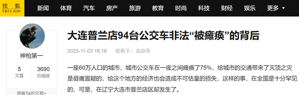 一座60万人口的城市,城市公交车在一夜之间瘫痪了75%,给城市的交通带来了灭顶之灾是毋庸置疑的,给这个地方的经济也会造成不可估量的损失,这样的事,在全国是十分罕见的,可是,在辽宁大连市普兰店区却发生了。
