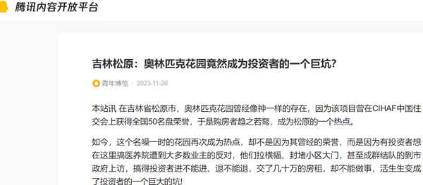 本站讯 在吉林省松原市,奥林匹克花园曾经像神一样的存在,因为该项目曾在CIHAF中国住交会上获得全国50名盘荣誉,于是购房者趋之若鹜,成为松原的一个热点。