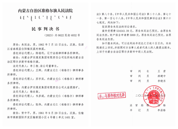 大庙渠矿隶属于大名鼎鼎的“内蒙古伊东煤炭集团”,于是朱先生以原告的身份,准备在法庭上向伊东集团讨回公道。