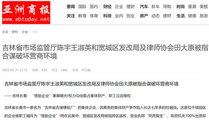 吉林省市场监管厅陈宇王淑英和宽城区发改局及律师协会田大原被指合谋破坏营商环境