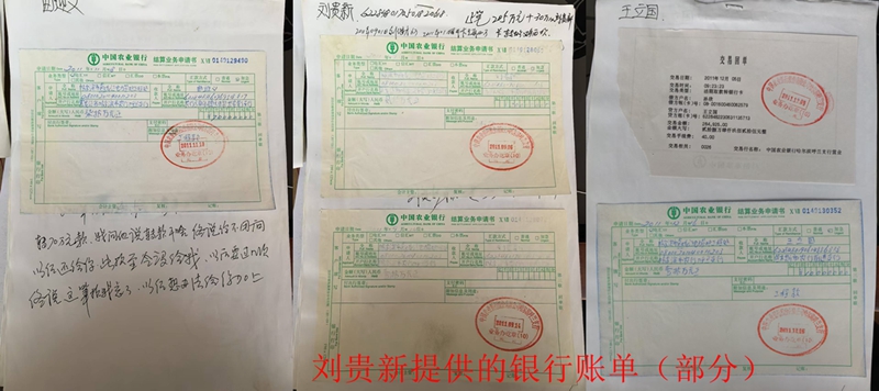 刘贵新在实名举报的同时,随举报信附上了童立勇从其公司转出工程款的明细表以及利用公司资质签订的六份合同和大量银行记账凭证、转账记录作为证据。刘贵新坚称:他手里还有在呼兰区法院开庭时童力勇交的应对材料,是在呼兰法院复印的,可以证明童力勇的上述问题。因为刘贵新每年都要多次去省送变电公司要钱,该公司的纪检委都参与算了,信访、财会也参与了,都认为欠刘贵新的钱,却没人管。该公司的办公室主任马晓光还曾叫童力勇和刘贵新对帐,定好了日子童力勇却不去,到现在这账也没法对,至今送变电公司也没组织给刘贵新对帐。刘贵新说,如今他想走法律程序却拿不出来诉讼费、律师费,更没有其他费用,在走投无路的情况下,才求助媒体。他恳请相关部门依照20届中央纪委四次会议对国企、工程招标领域腐败问题的严惩要求,深入调查童立勇的违法违纪行为。
