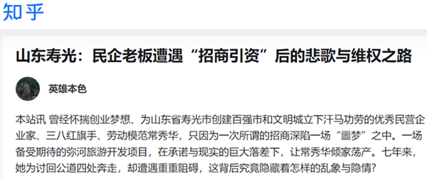 本站讯 曾经怀揣创业梦想、为山东省寿光市创建百强市和文明城立下汗马功劳的优秀民营企业家、三八红旗手、劳动模范常秀华,只因为一次所谓的招商深陷一场“噩梦”之中。一场备受期待的弥河旅游开发项目,在承诺与现实的巨大落差下,让常秀华倾家荡产。七年来,她为讨回公道四处奔走,却遭遇重重阻碍,这背后究竟隐藏着怎样的乱象与隐情?