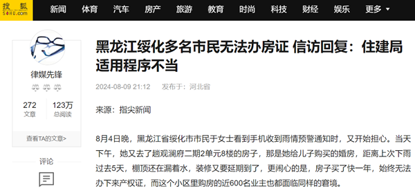 多位业主投诉到相关部门,当地信访部门对其中的投诉者回复:“绥化市住房和城乡建设局出具的处理意见无明确结论,适用程序不当。”