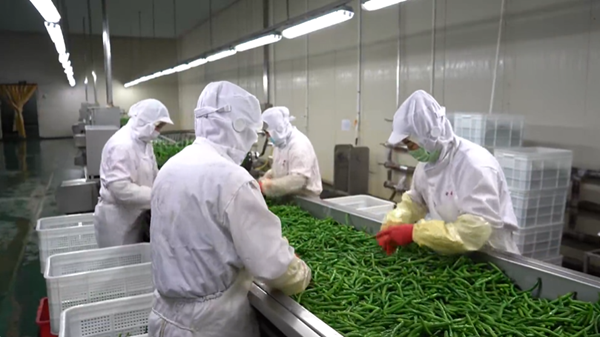 兰西县田谷园蔬菜种植合作社理事长韩伟说:黄豆角从地里采摘出来,不到20分钟就能直接拉到工厂的生产车间进行生产加工、包装,国内的各大批发商都来到这里进行批发。
