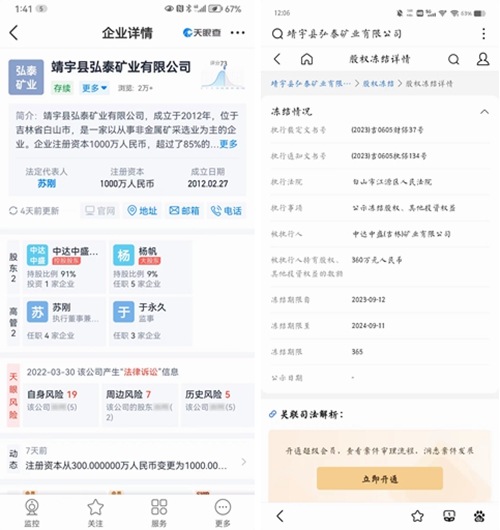 4、2023年11月6日,江源区法院还将靖宇县弘泰矿业股权以360万元价格抵债给姜雨彤(据称此人为霸占矿山“黑恶势力”主谋之一姜春鹏之女,其人有强大的保护伞),给杨帆造成了巨大的经济损失,且严重侵害了杨帆的财产权。
