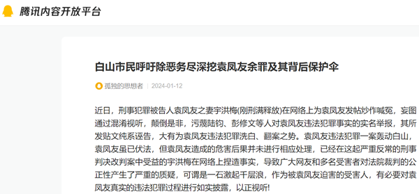 近日,刑事犯罪被告人袁凤友之妻宇洪梅(刚刑满释放)在网络上为袁凤友发帖炒作喊冤,妄图通过混淆视听,颠倒是非,污蔑陆钧、彭修文等人对袁凤友违法犯罪事实的实名举报,其所发贴文纯系诬告,大有为袁凤友违法犯罪洗白、翻案之势。袁凤友违法犯罪一案轰动白山,袁凤友虽已伏法,但袁凤友造成的危害后果并未进行相应处理,已经在这起严重反常的刑事判决改判案中受益的宇洪梅在网络上捏造事实,导致广大网友和多名受害者对法院裁判的公正性产生了严重的质疑,可谓是一石激起千层浪,作为被袁凤友迫害的受害人,有必要对袁凤友真实的违法犯罪过程进行如实披露,以正视听!