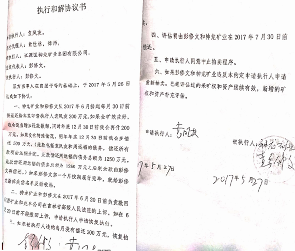 彭修文介绍:在白山人大、政法委领导们多次见证下,该执行案件在2017年和解,2019年3月,彭修文履行承诺,还清袁凤友4000万元后,该案件应当终结,此事白山中院无不知晓。但是,袁凤友为了在彭修文身上榨取更多利益,操纵鹿贵金篡改调解笔录,将已还本金4000万元改为还利息4000万元,转而再次执行彭修文本金4000万元。2021年1月,袁凤友通过时任白山中院执行局局长陈大龙(陈大龙2023年2月因涉嫌严重违纪违法接受审查调查)与省高法的关系,以“加快案件推进执行,提升案件办理质效”为由,把已经和解的案件移交到延边中院重复执行。