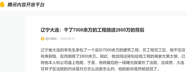 辽宁省大连的李先生承包了一个造价7000余万的建筑工程,在工程完工后,他不仅没有挣到钱,...