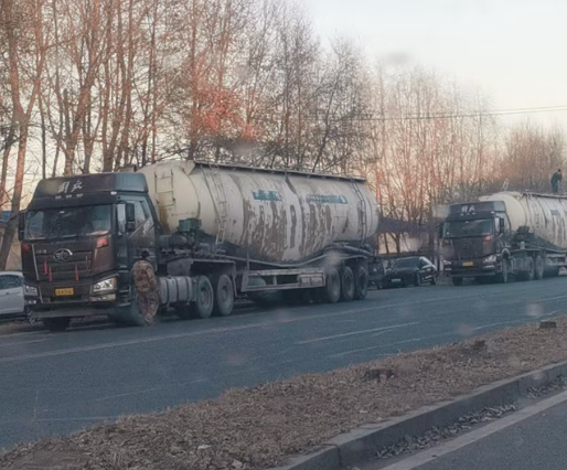 根据网友的爆料,笔者于11月24日凌晨7点多驱车赶到长春另一热电厂门前,映入眼帘的是排队等待进入电厂的重型罐装货车,这些车辆给人的第一感觉就是太大、太长了,这样的超载车辆上路存在严重的安全隐患。